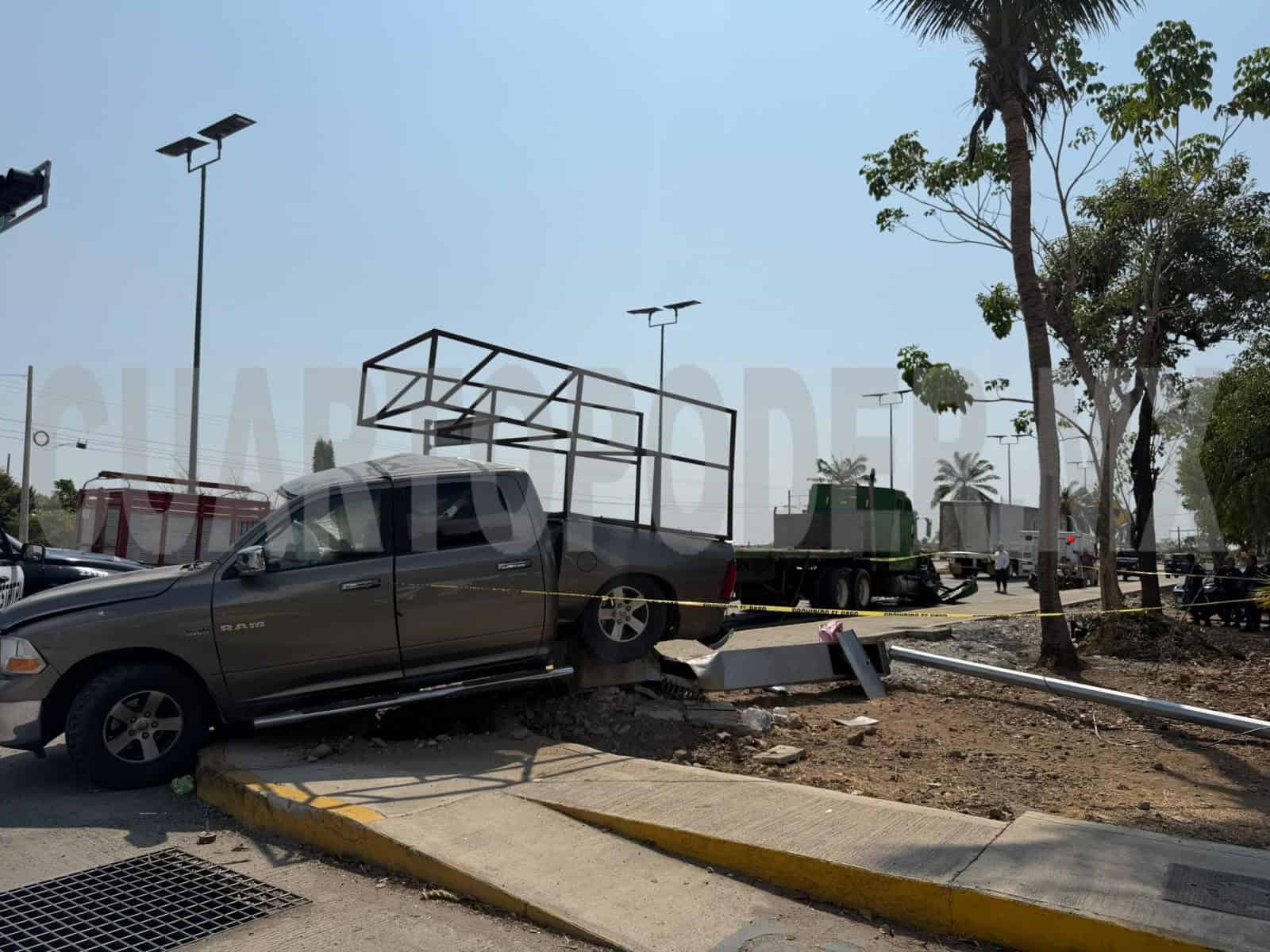 En el libramiento Sur de Tapachula se dio un fuerte choque en el que se vieron involucrados una camioneta pick up y un tráiler, lo que dejó como saldo a una persona lesionada y daños materiales de alta consideración, durante la tarde del martes.