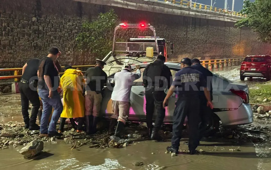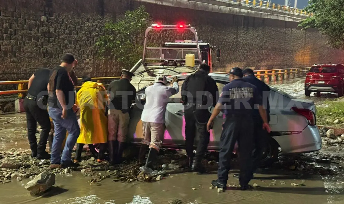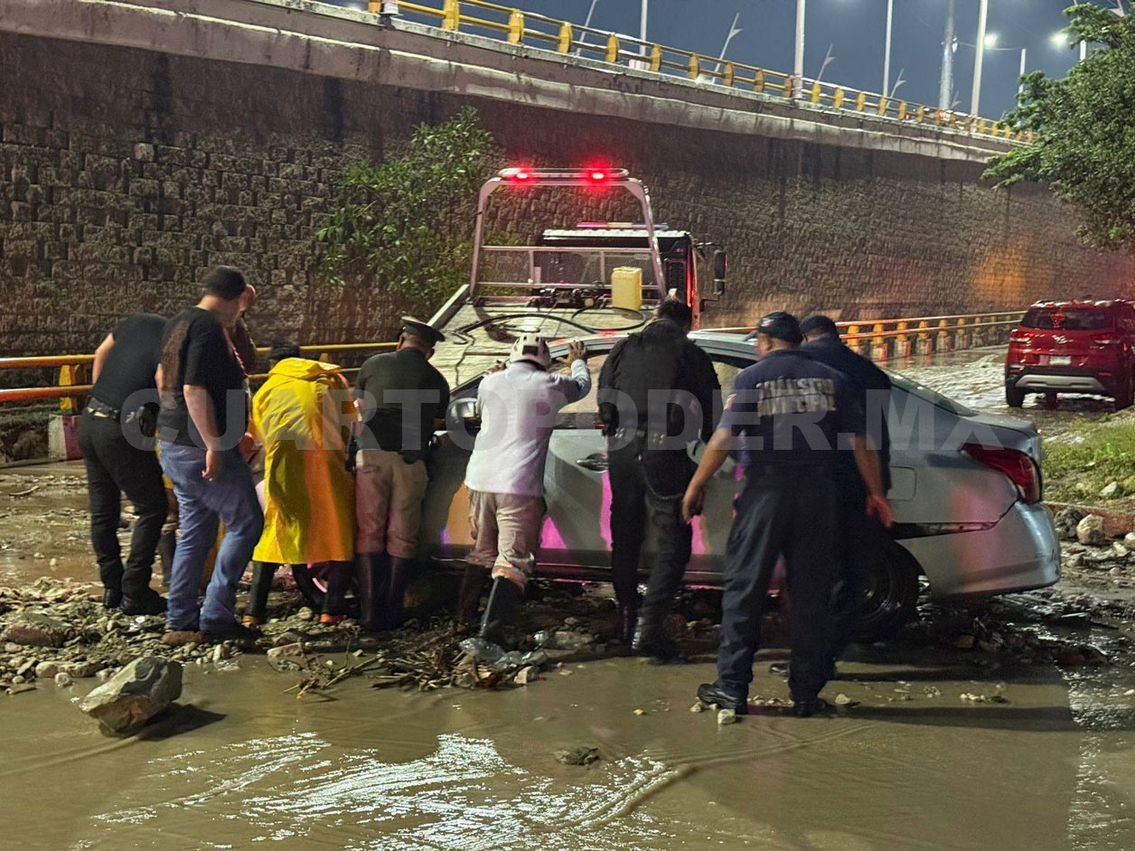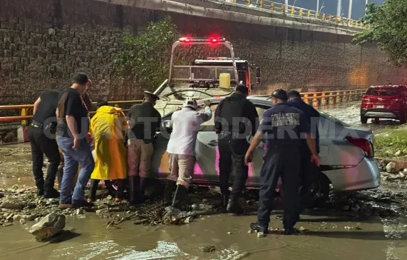 Aguacero arrastra vehículos en Tuxtla