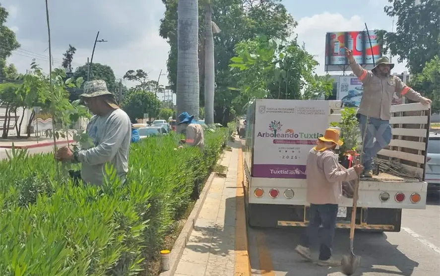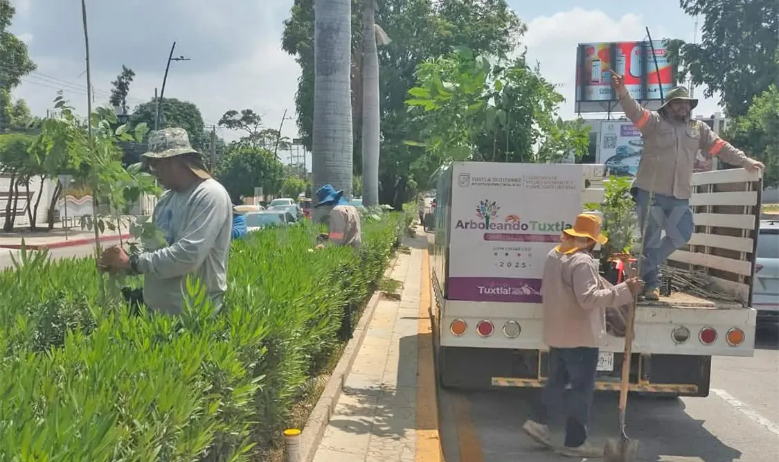 El personal de la Secretaría de Medio Ambiente y Movilidad Urbana de Tuxtla Gutiérrez llevó a cabo una jornada de reforestación bajo el programa “Arboleando Tuxtla”, plantando un total de 70 árboles nativos, entre ellos guachipilín, primavera, matilisguate, matarratón, chinche malinche, chilca, hormiguillo, guanábana, guayaba y caobilla, con el propósito de recuperar ecologías locales e integrar naturaleza al paisaje urbano.