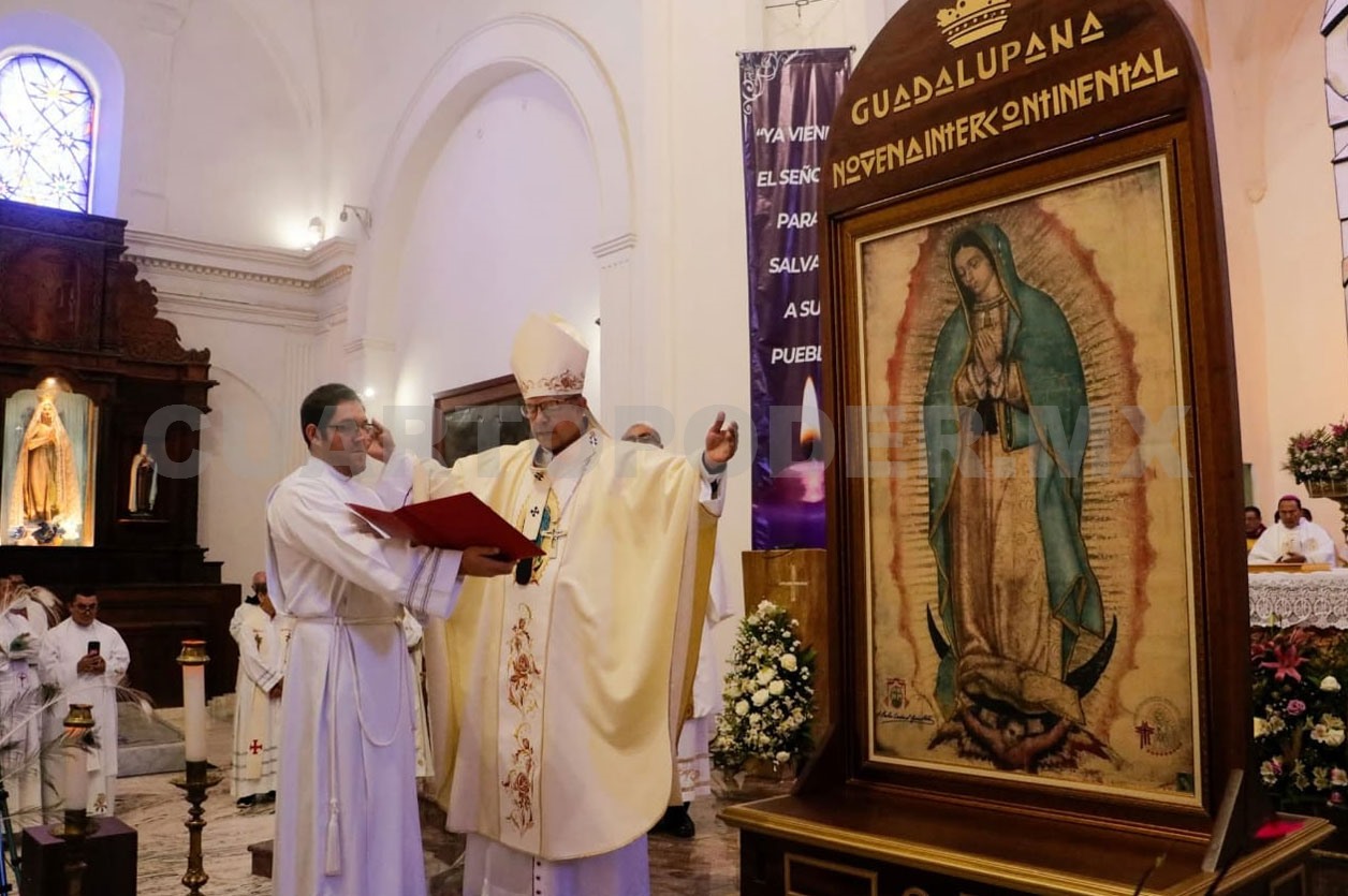 La réplica de la tilma de San Juan Diego, entregada este año por la Conferencia del Episcopado Mexicano a cada diócesis del país como parte de la Novena Intercontinental Guadalupana, fue entronizada en la Catedral Metropolitana de San Marcos, en Tuxtla Gutiérrez.