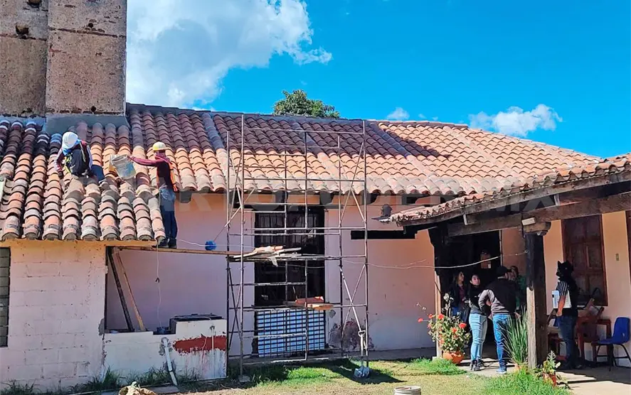 Precisó que los trabajos consistieron el retiro de lámina de asbesto y colocación de lámina de zinc, reglas de madera y teja, sustitución de algunos tablones de madera en mal estado del plafón, áreas menores de aplanados, entre otros.