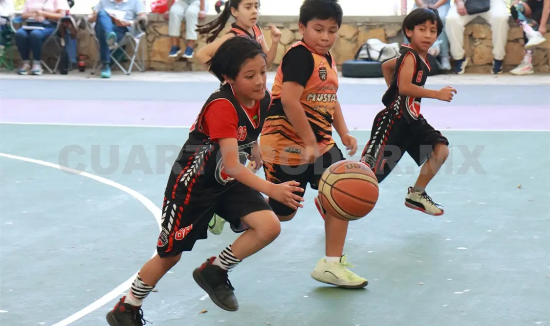 La jornada también presentó un atractivo duelo en la infantil, en la que Huskys MX y Alecam Varonil se enfrentaron en un partido lleno de intensidad. Los dos conjuntos saltaron a la cancha con el objetivo de sumar puntos en la clasificación, mostrando orden en sus movimientos ofensivos y aplicando jugadas colectivas que provocaron los aplausos de los asistentes.