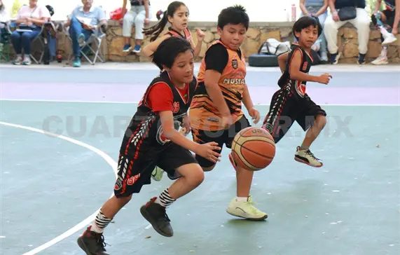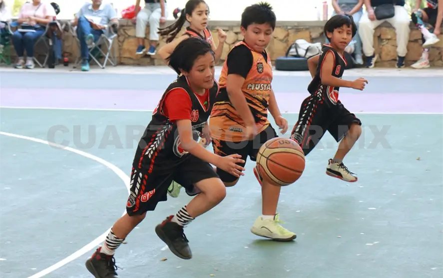 Otro juego que generó emociones fue el que sostuvieron Cuervos MX y Cayali 7, también dentro de la categoría infantil. En este compromiso ambos conjuntos mostraron entrega total, luchando por cada balón y buscando abrir espacios para concretar canastas. Bajo la dirección de sus entrenadores, los jugadores ajustaron estrategias durante el desarrollo del encuentro, dando muestra de su crecimiento deportivo.
