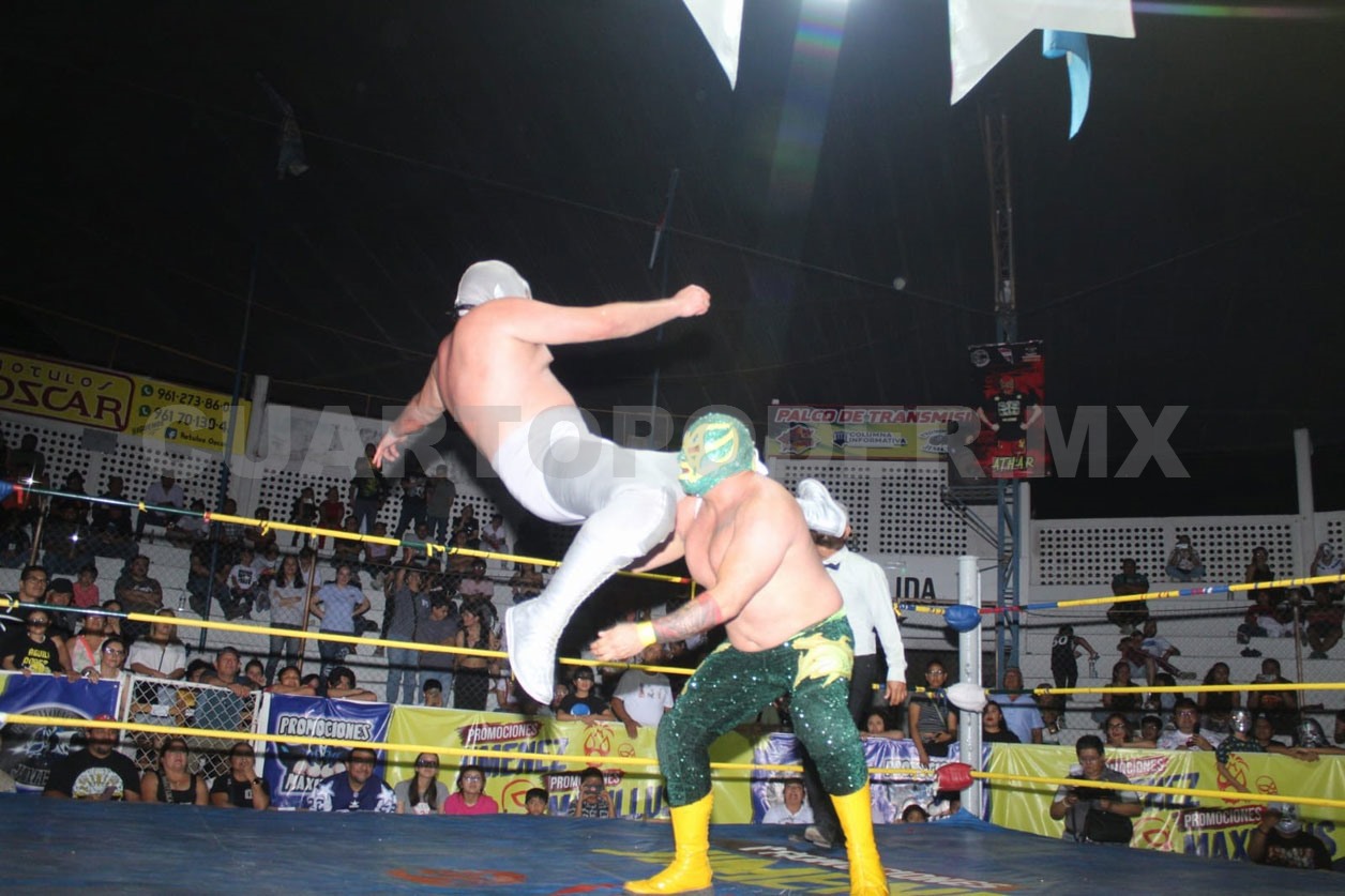 La afición que se dio cita en la función de Lucha Libre vivió una noche cargada de intensidad con la lucha estelar de revancha; un combate que había sido solicitado nuevamente por el público tras el enfrentamiento que ambas parejas protagonizaron meses atrás.