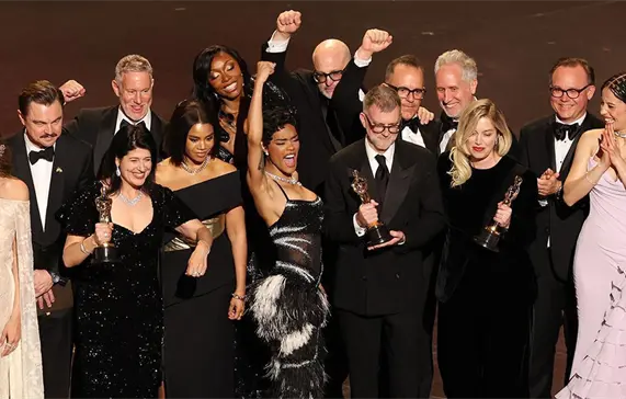 A su alrededor, los invitados debutantes no le siguieron. El ambiente era más contenido, lo que terminaría marcando el ánimo general de la noche, y que se reflejó en especial al final, en el anuncio de mejor película para Una batalla tras otra, de Paul Thomas Anderson, que terminó la noche con seis premios sin el entusiasmo que sí generaron otras cintas.