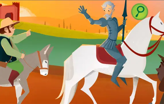 Don Quijote y su fiel escudero, Sancho Panza, recorren incansablemente los campos de Castilla. Van en busca de aventuras, pero también intentan remediar los abusos e injusticias con los que se encuentran en el camino.