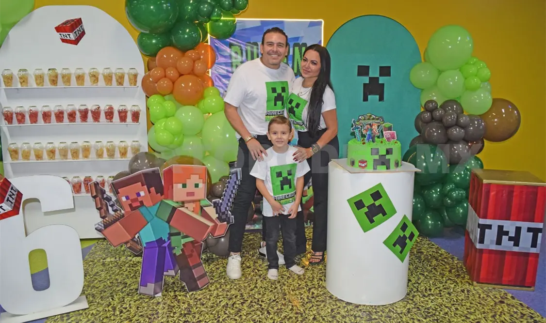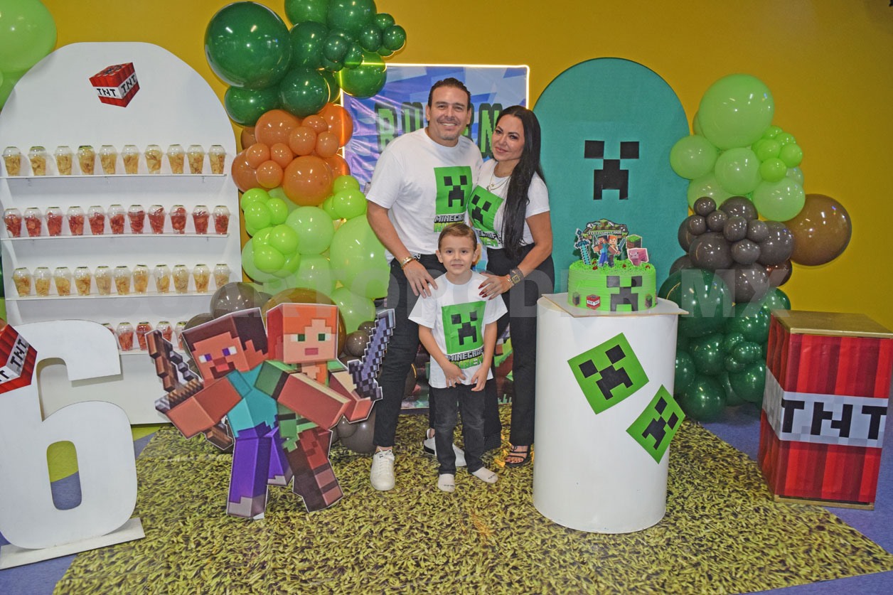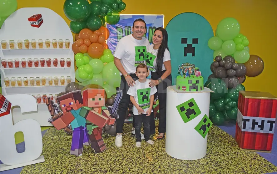 El pequeño Rubén cumplió 6 años, por lo que sus papis le organizaron una hermosa fiesta con la temática de Minecraft, a la que acudieron varios de sus amiguitos para pasarla de lo mejor y disfrutar los juegos del lugar, además de divertirse con el show preparado para la ocasión. Fue una tarde llena de recuerdos, regalos y alegría para el festejado