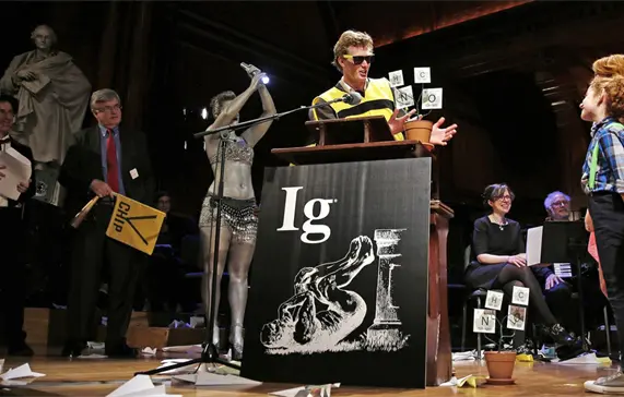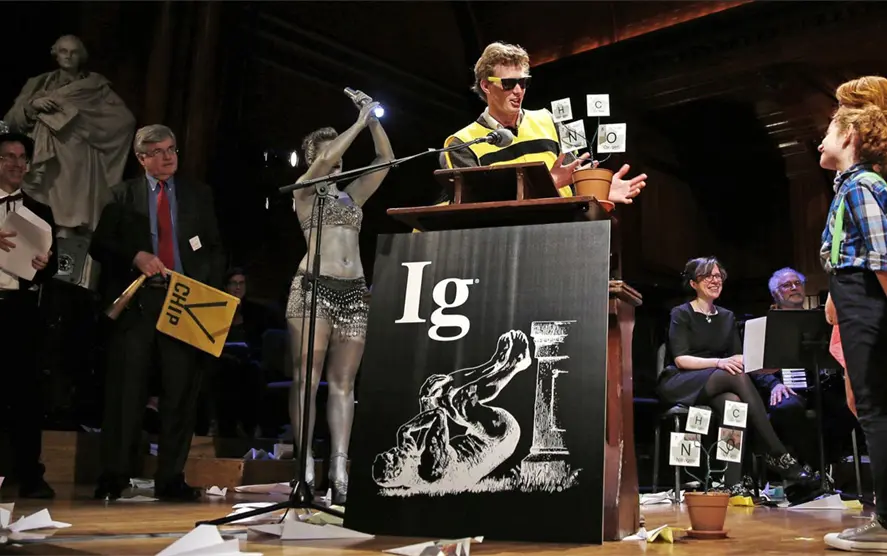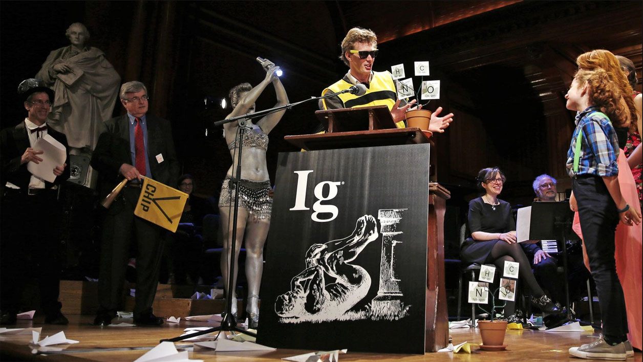 Esta parodia estadounidense de los auténticos Premios Nobel reconoce los logros de diez grupos de científicos que primero hacen reír a la gente, y luego la hacen pensar. Unos ejemplos: el galardón de Medicina (1992) por la elucidación de los compuestos químicos responsables del mal olor de los pies; Biología (1997) por medir distintos patrones de ondas cerebrales en individuos masticando chicles de diferentes sabores; Física (2021) por hacer experimentos para aprender por qué los peatones no chocan constantemente con otros peatones.