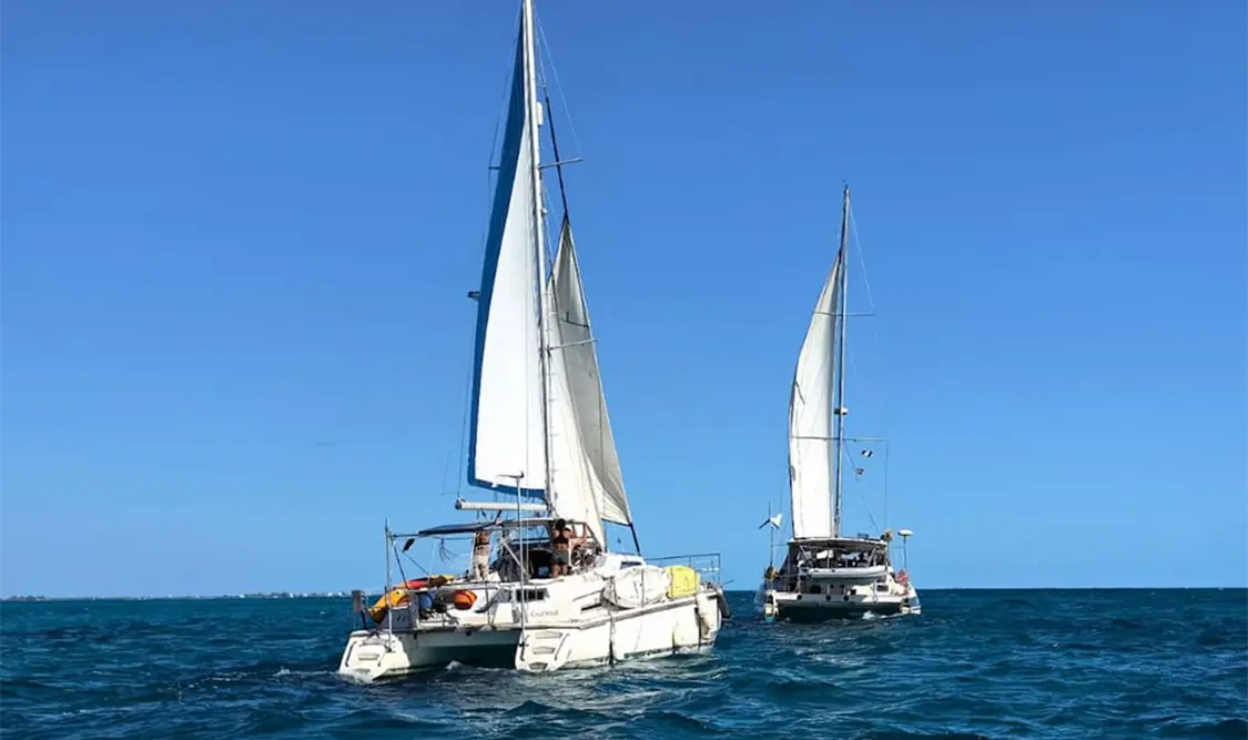 Las embarcaciones, con bandera mexicana y cubana, navegaron frente a las costas de Isla Mujeres durante casi una hora y, antes de entrar a mar abierto, dos tripulantes que estaban asistiendo y acompañando a la decena de activistas descendieron.
