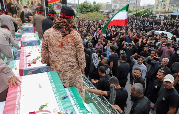 El funeral y la ceremonia de entierro de las víctimas mortales del ataque fue en la plaza de los Mártires de la ciudad de Minab.