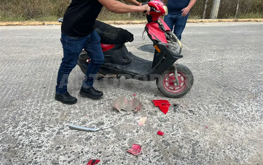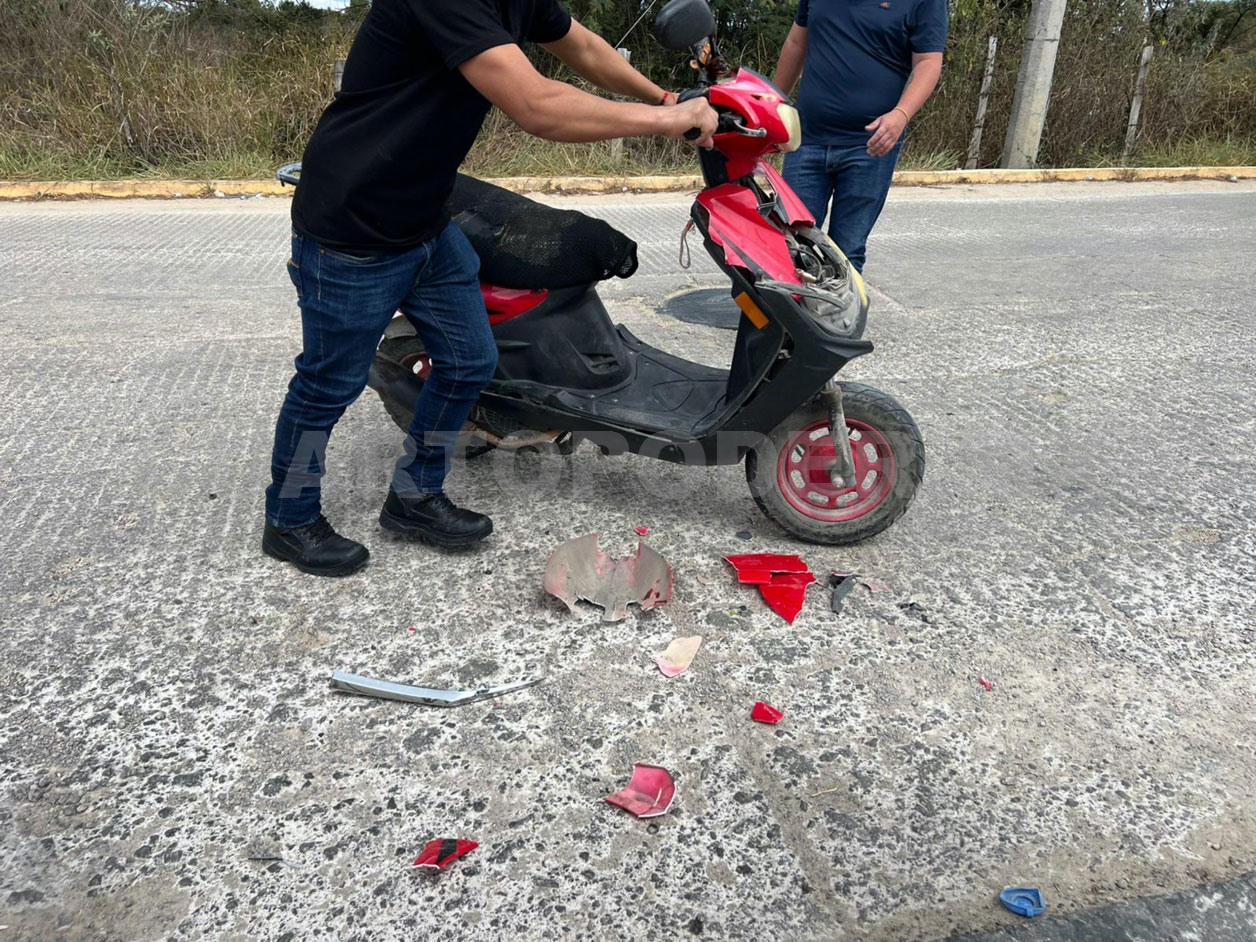 De igual manera ayer a las 14:30 horas el conductor de un Mazda de color negro, embistió a una joven que circulaba en una motoneta sobre la avenida principal del fraccionamiento Las Tinajas.