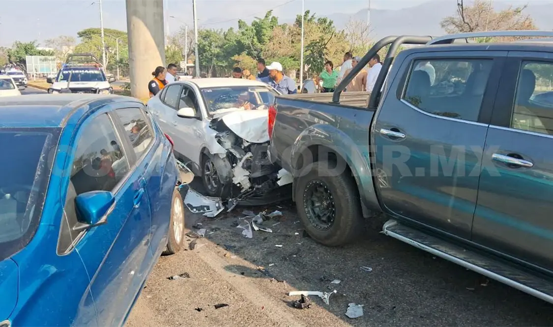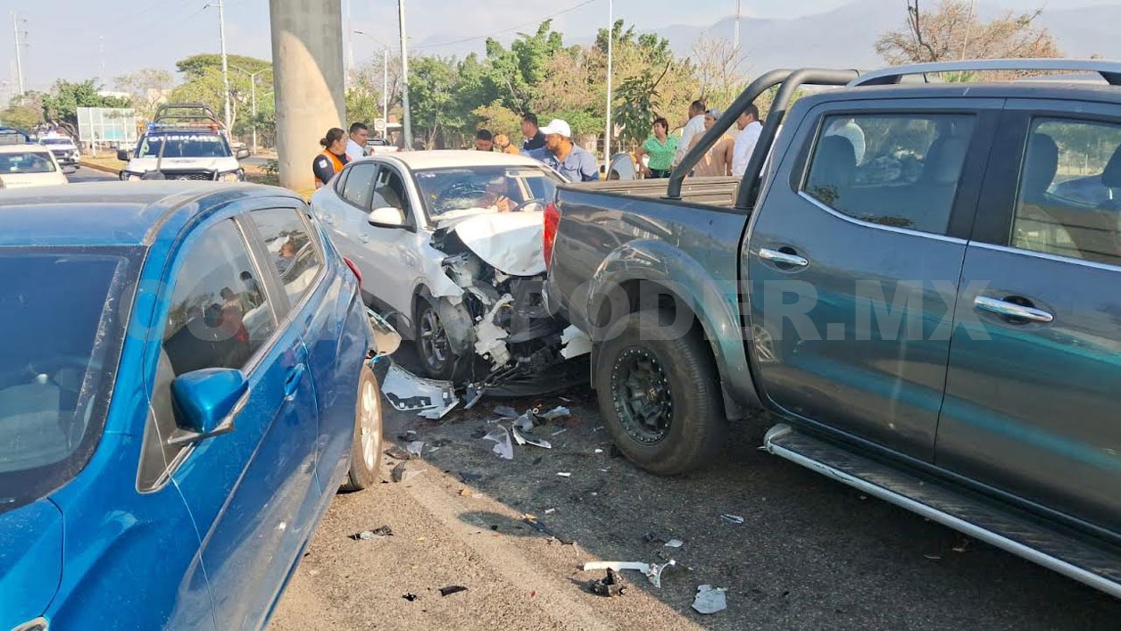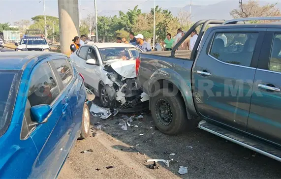 Miles de pesos en daños materiales, además de una persona lesionada, fue el saldo de un aparatoso accidente de tránsito múltiple suscitado sobre el libramiento Norte, frente a la escuela privada Pablo Guardado Chávez, en Tuxtla Gutiérrez. Lo anterior ocurrió a las 08:10 horas.