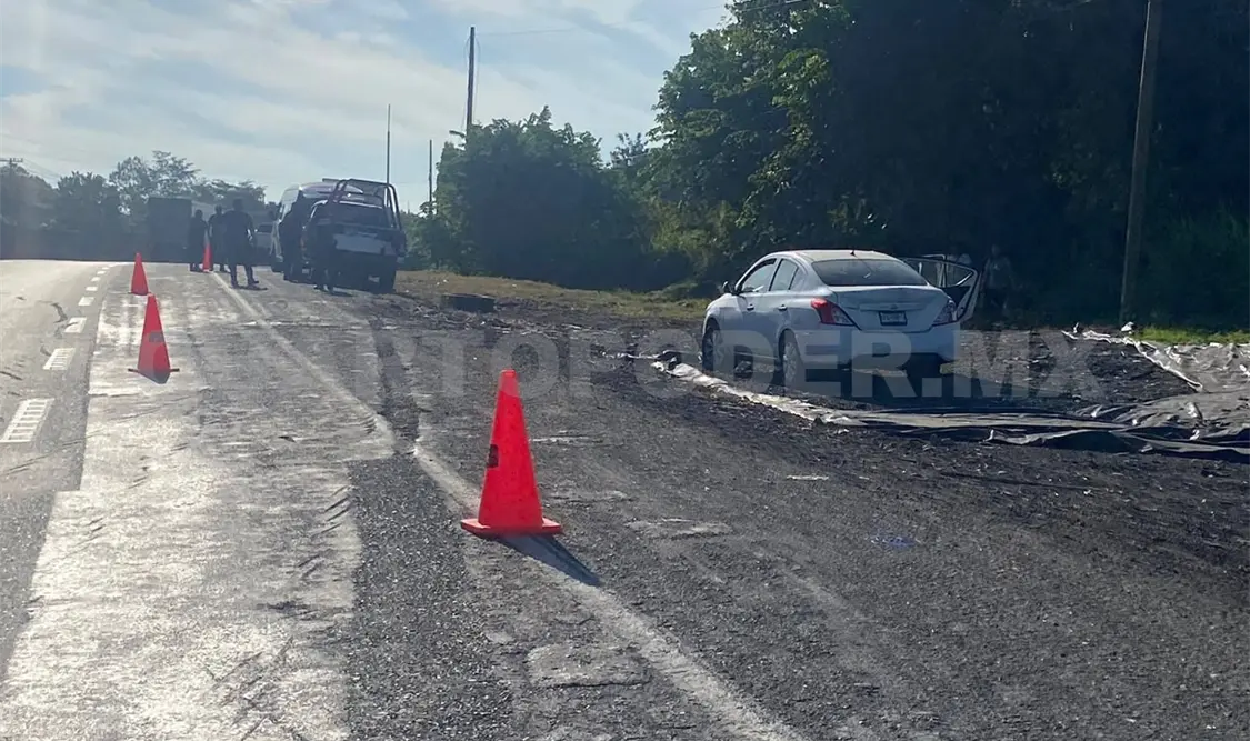 Se informó que una unidad de la empresa Transportes Rápidos de Huixtla (TRH), con número económico 01, se desplazaba de Huixtla a Tapachula cuando a la altura de la curva en el entronque del libramiento y carretera Costera, al parecer tuvo una falla mecánica, por lo cual se estampó contra un automóvil Nissan Versa de color blanco.