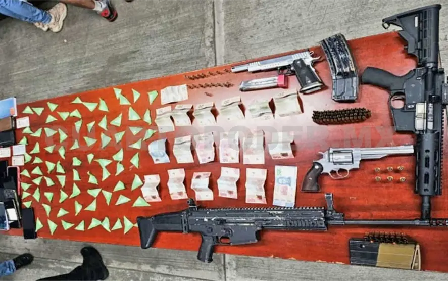 Como resultado les aseguraron un arma tipo revólver del calibre 44 mm, con seis cartuchos útiles; una pistola escuadra calibre 38 súper, con un cargador abastecido de 17 cartuchos útiles; un arma larga calibre 7.62x51, con un cargador abastecido con 15 cartuchos útiles, y un arma larga multicalibre .223/5.56, con un cargador abastecido con 58 cartuchos útiles.