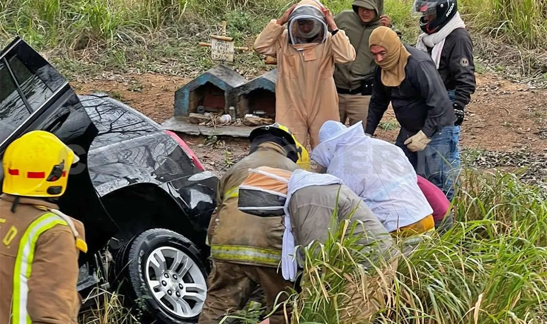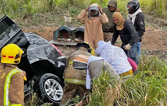 Sin embargo, las labores de rescate se vieron complicadas debido a que, luego del percance, un enjambre de abejas atacó a los pasajeros y a quienes intentaban auxiliarlos.