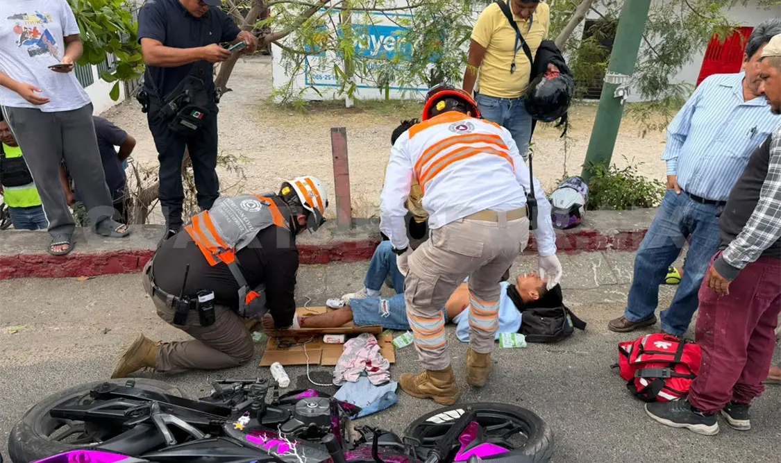 Tras el impacto, el joven salió proyectado varios metros y cayó al pavimento. Paramédicos de Protección Civil (PC) Municipal le brindaron atención en el sitio y confirmaron que tenía una fractura expuesta en una pierna.