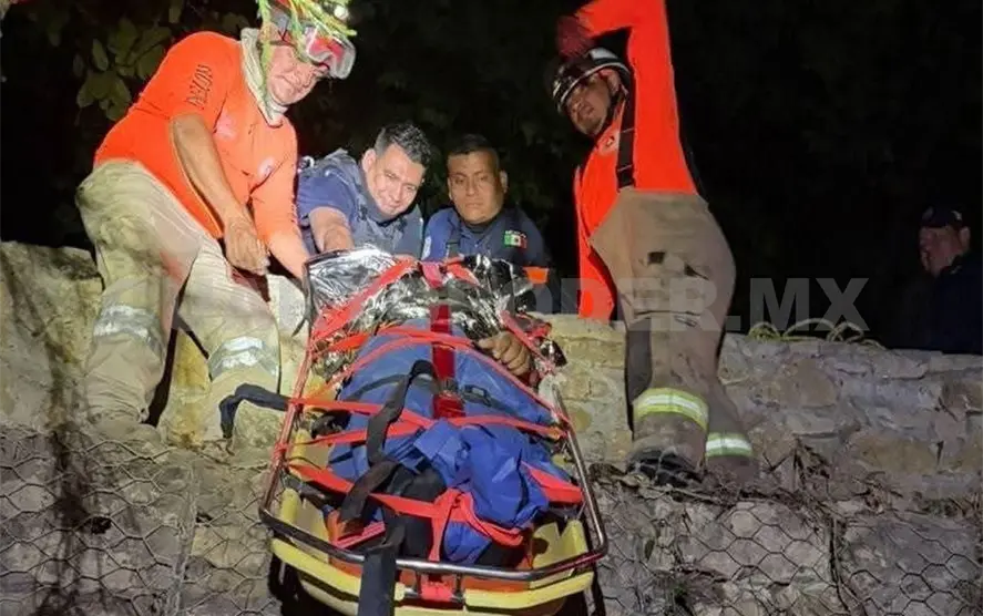 Con el apoyo de cuerdas, una tabla marina y un arnés tipo spider, los rescatistas lograron auxiliar y extraer al lesionado, quien presentaba múltiples golpes y lesiones de gravedad.