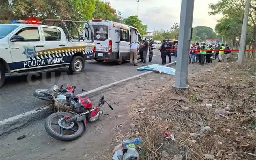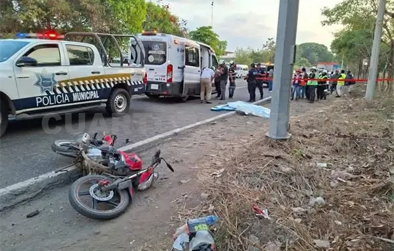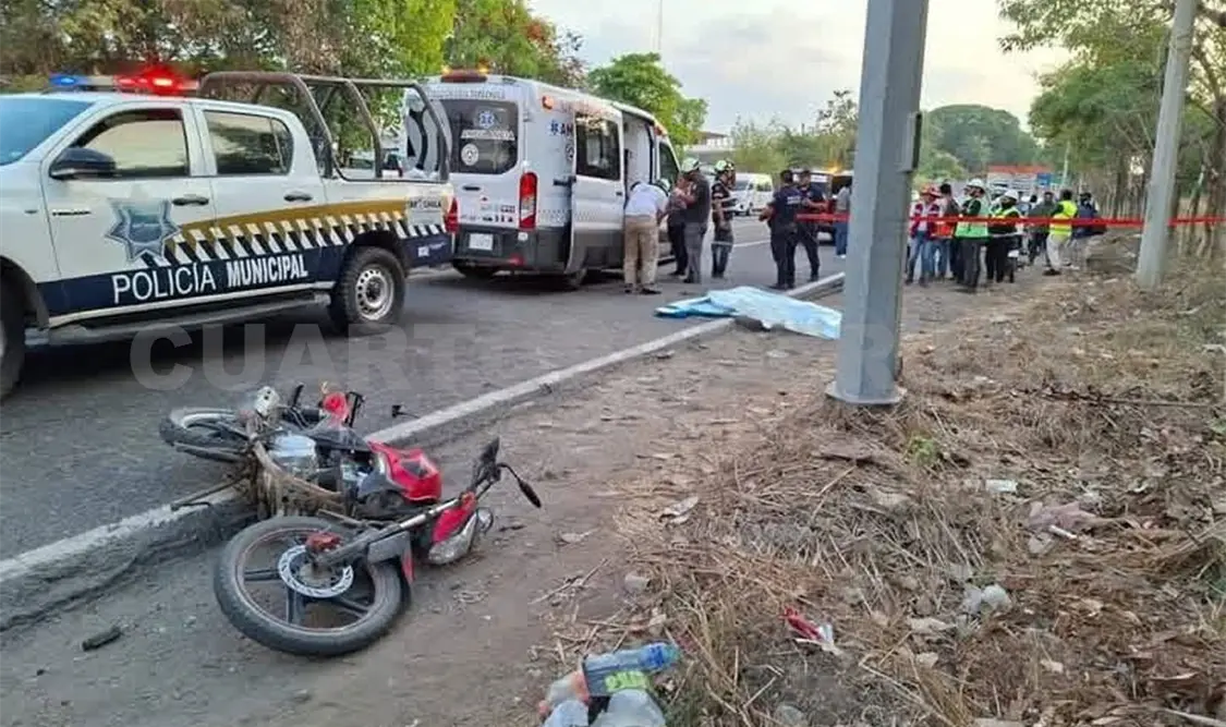 Un motociclista perdió la vida y otro resultó seriamente lesionado al ser impactados por un tráiler cuando circulaban sobre el tramo carretero de Tapachula a Puerto Madero.