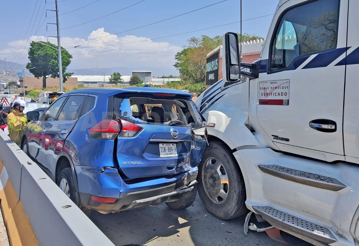 Un aparatoso accidente múltiple se registró el mediodía del sábado sobre el libramiento Sur, a la altura del crucero con el bulevar Andrés Serra Rojas, en la capital chiapaneca, donde un tráiler embistió al menos seis vehículos particulares, dejando como saldo cuatro personas lesionadas, entre ellas un menor de edad.