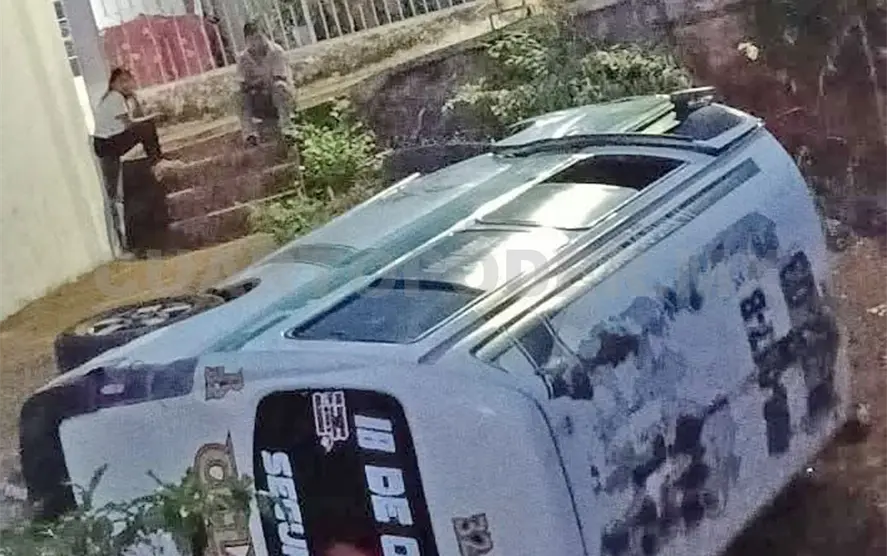 Una presunta falla en el sistema de frenos provocó la volcadura de una combi del transporte colectivo cuando se desplazaba en las inmediaciones de la colonia 18 de Octubre, al sur de Tapachula, dejando solamente daños materiales.