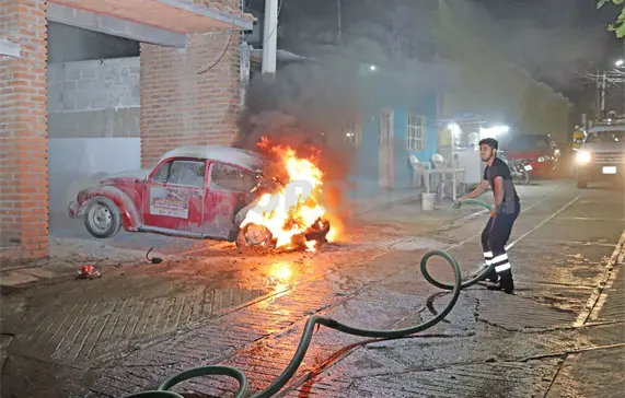 Por poco termina como pérdida total, un Vocho durante las últimas horas de la noche del viernes al sur poniente del municipio de Cintalapa luego de verse envuelto por las llamas que comenzaron en el motor.